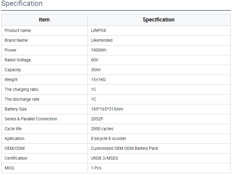60V 30Ah LiFePO4 Semi-solid State Golf Cart Battery